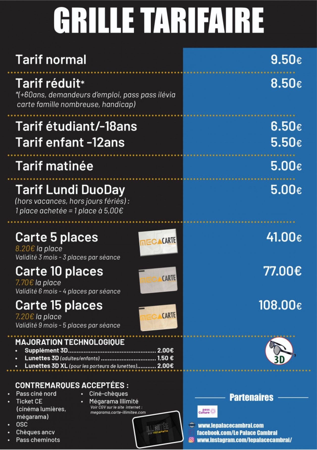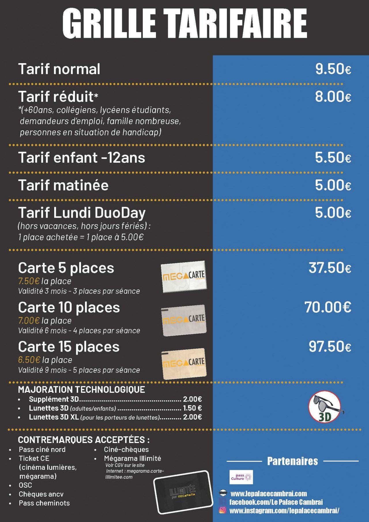 Les tarifs de votre cinéma Le Palace